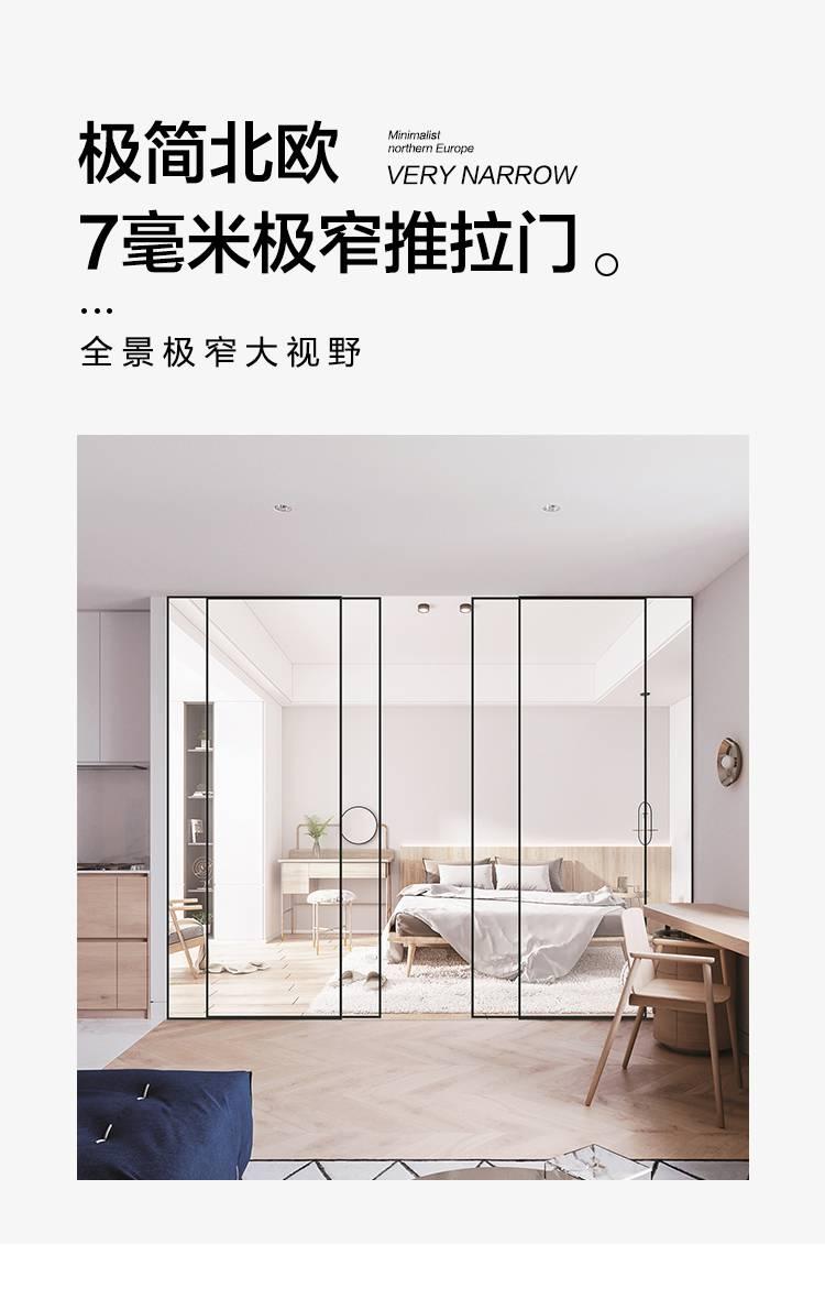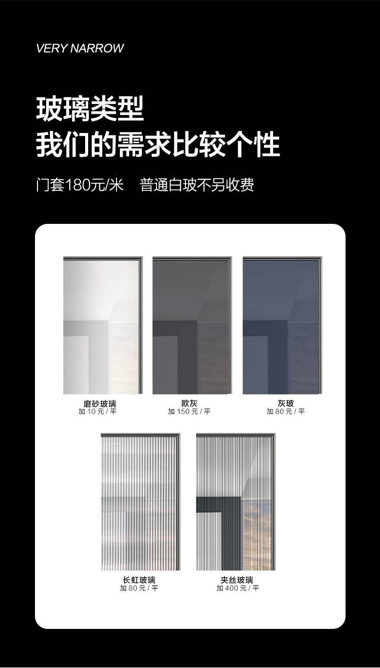 玻璃極簡門,極簡,優雅!門的至簡絕不是“少”,而是去除“多余”。簡約,是一種追求完美的境界。玻璃極簡門,集時尚、簡約、精粹于一身。極端狹長的框架結構和玻璃的完美結合讓光線自由充足的滲透進整個室內去繁從簡,精心設計簡潔,但又不失典雅的純真,但不失意蘊,而不忘初心。