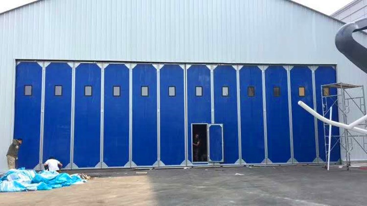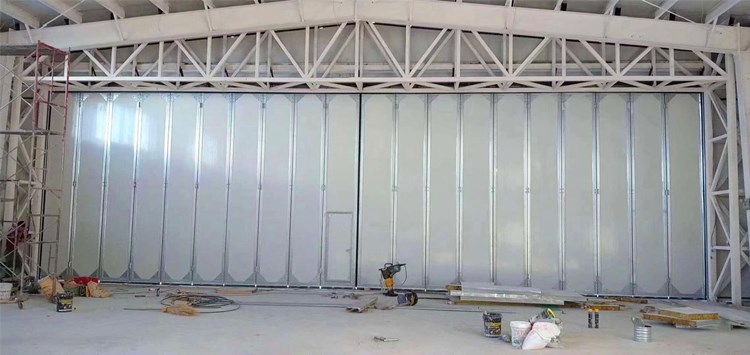 折疊門主要由門框、門扇、傳動部件、轉臂部件、傳動桿、定向裝置等組成。該門型均可安裝于室內和室外。每樘門